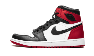 The Women’s Air Jordans 1 “Satin Black Toe” is a special construction of the original colorway of the Jordans 1 with satin paneling on the heel. Following the same blueprint of the “Satin Shattered Backboard” colorway that was also a women’s exclusive, this “Satin Black Toe” edition features a black and white leather upper with red satin at the heel. The Air Jordans “wings” logo on the ankle is presented in a metal medallion to complete the premium look. The Women’s Air Jordans 1 “Satin Black Toe” released on August 17, 2019 in limited quantities.