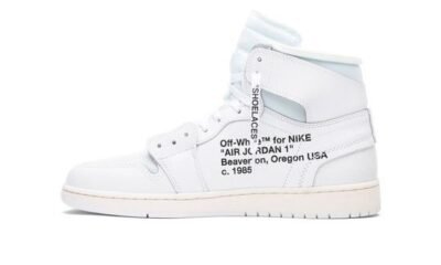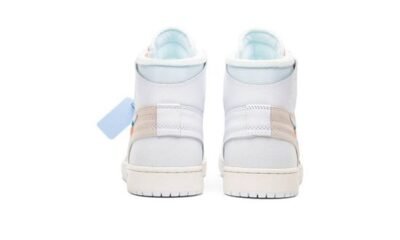 An elegant high-top all-white sneakers were released by Virgil Abloh through its The Ten Air Jordans 1 OG White. These running sneakers feature clean white leather construction with white overlays. It also showcases light pink heel straps, bright orange, and royal blue accenting. Besides that, the pair owns white leather Swooshes on the sides complemented by the black “AIR” labeling on the midsoles. These high-top sneakers are completed with white midsoles and outsoles. Wear this Air Jordans 1 Retro High OG White and enjoy its sleeking look on your feet.
